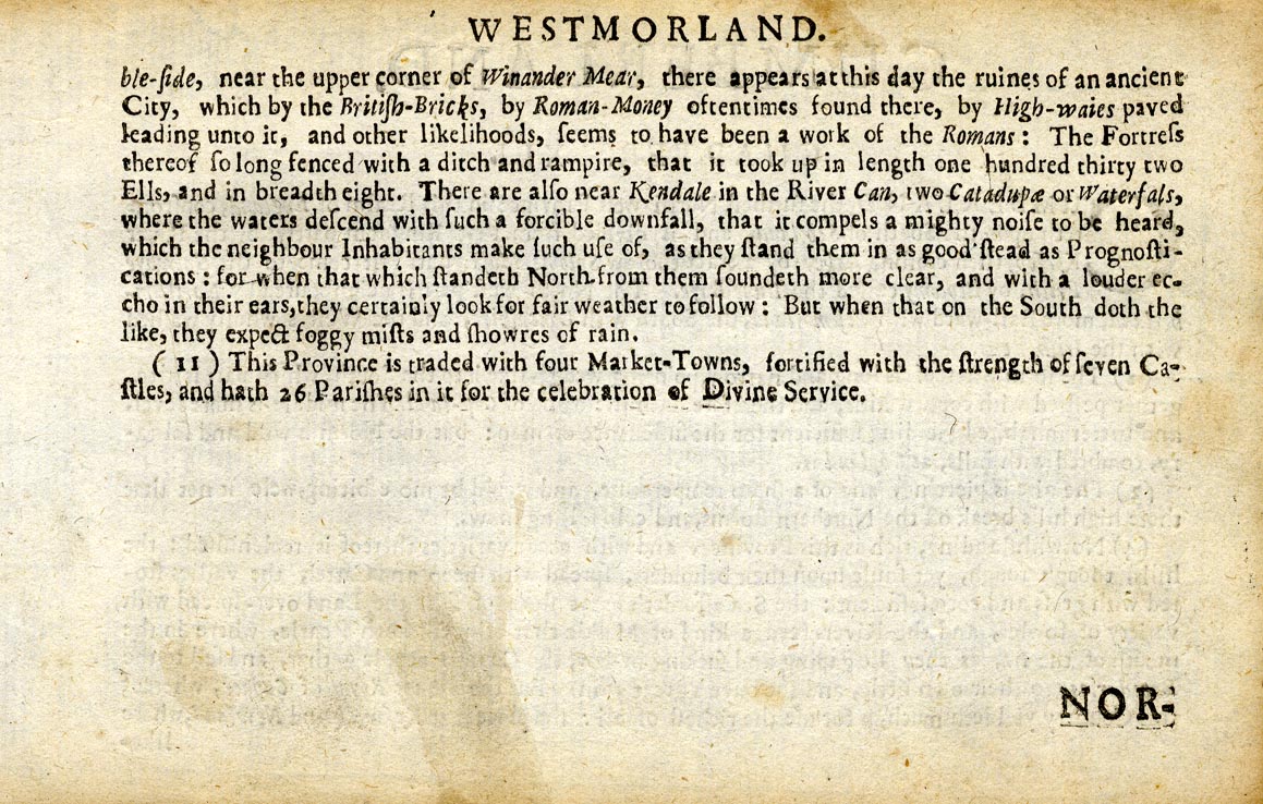 TEXT from KEER'S MAP OF WESTMORLAND AND CUMBERLAND,