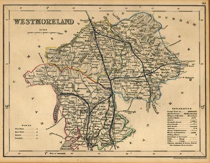 Westmorland, scale about 5.5 miles to 1 inch, by J Archer,
