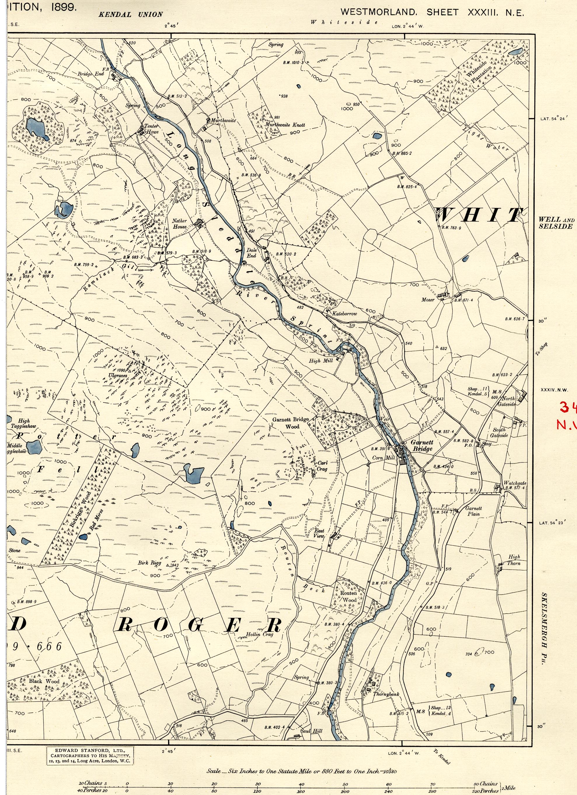 Map, County Series 6 inch map, quarter sheet Westmorland 33NE, published by the Ordnance Survey, Southampton, Hampshire, 1899.