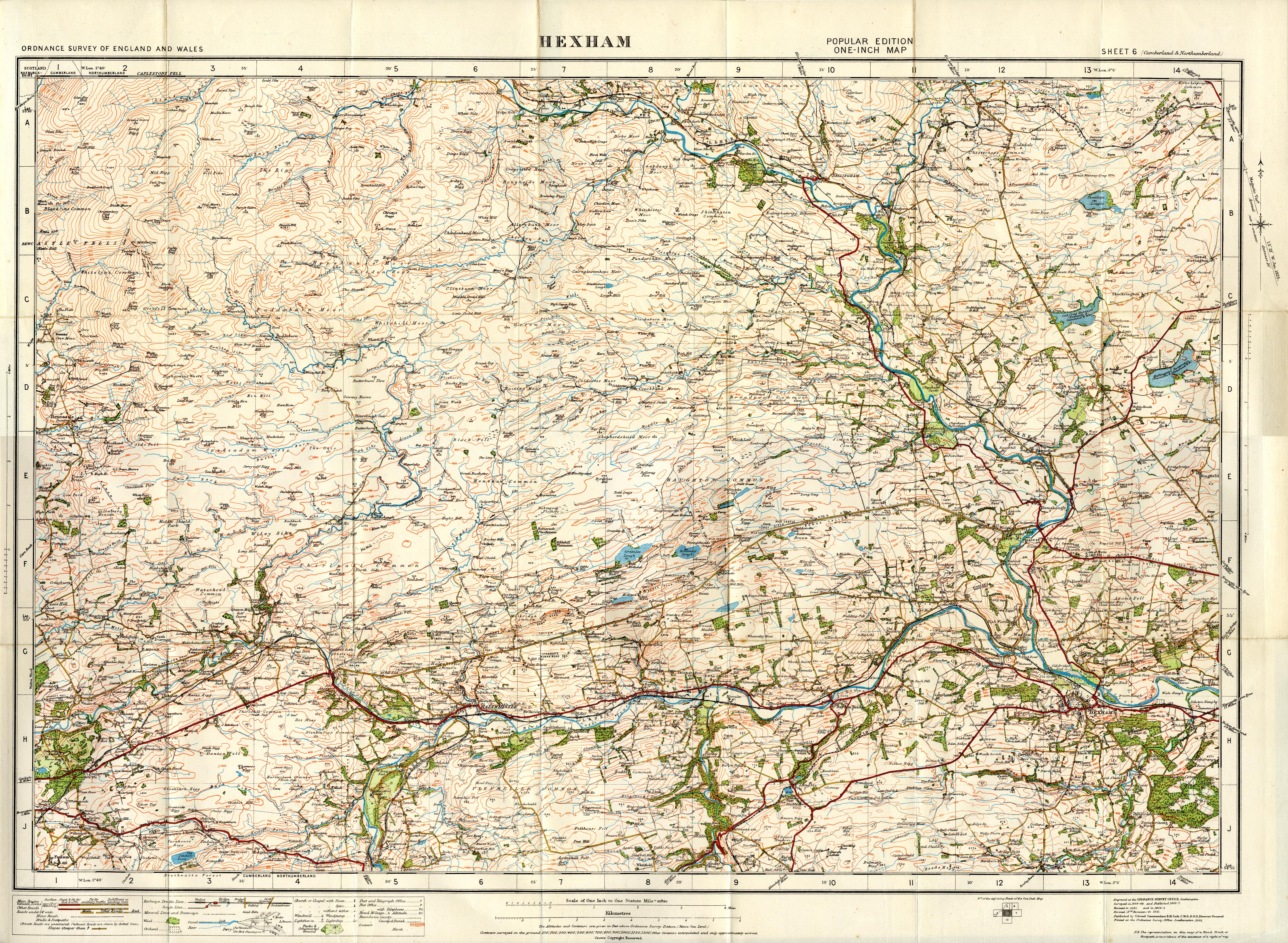 Map, colour printed, Hexham, scale 1 inch to 1 mile, Popular