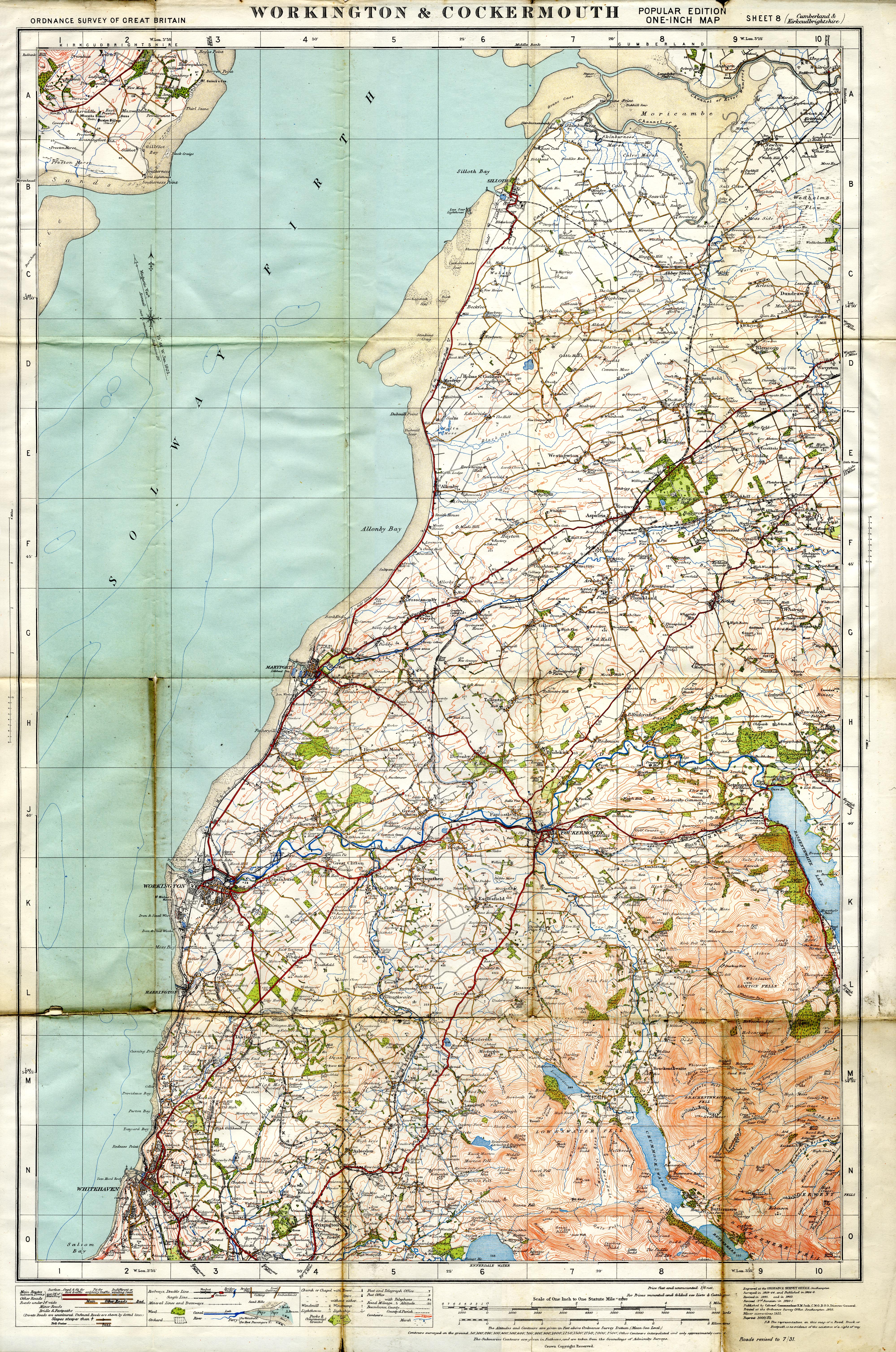 Map, colour printed, Workington and Cockermouth, scale 1 inch to