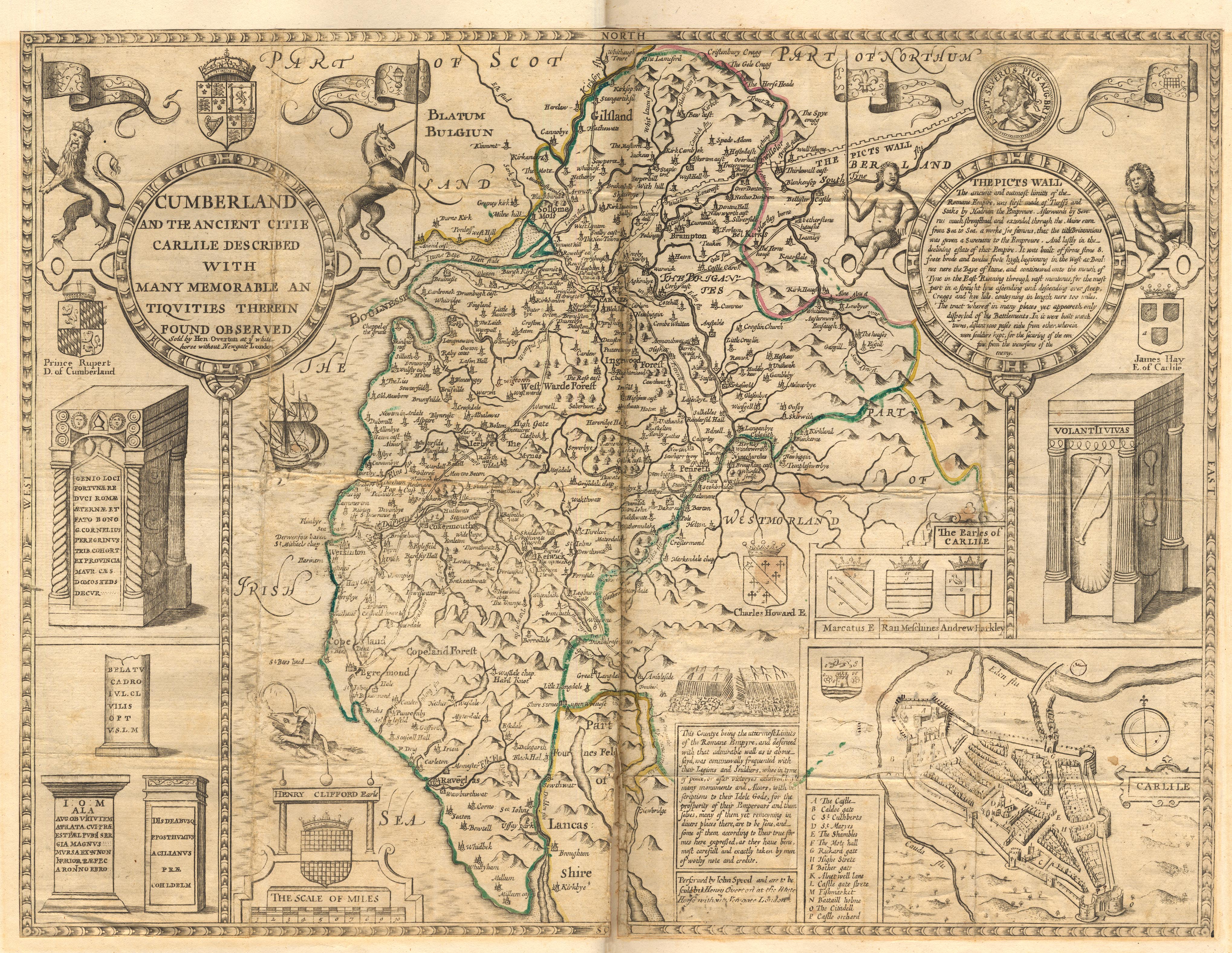 Map, uncoloured engraving, Cumberland and the Ancient Citie