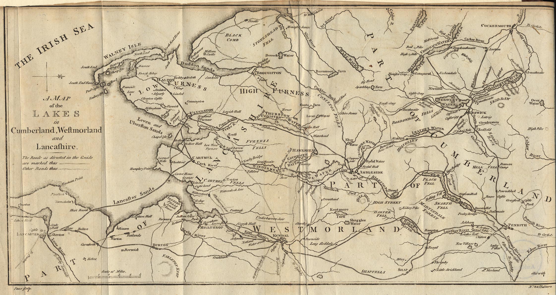 Map, uncoloured engraving, A Map of the Lakes in Cumberland,